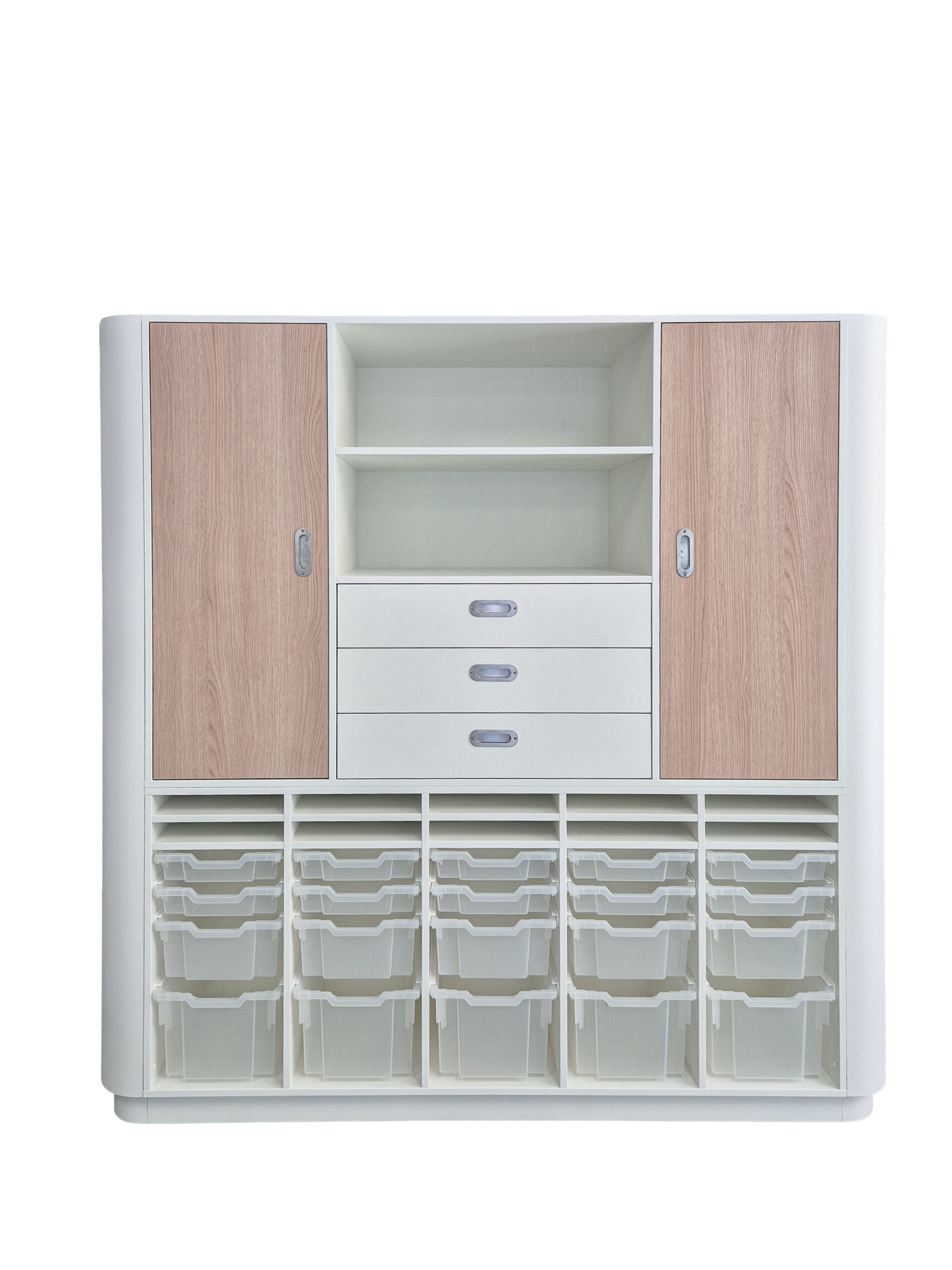 Al het knutselmateriaal opgeborgen op 1 centrale plek? De atelier- en knutselkasten zijn op diverse manieren in te richten waardoor er altijd plek is voor papier, verf, verf kwasten en al het andere knutselmateriaal. Daarnaast kunnen er extra droogrekken worden toegevoegd waar knutsel- en schilderwerkjes rustig in kunnen drogen. Zijn er veel materialen aanwezig? Kies dan voor een (verrijdbare) atelierwand!