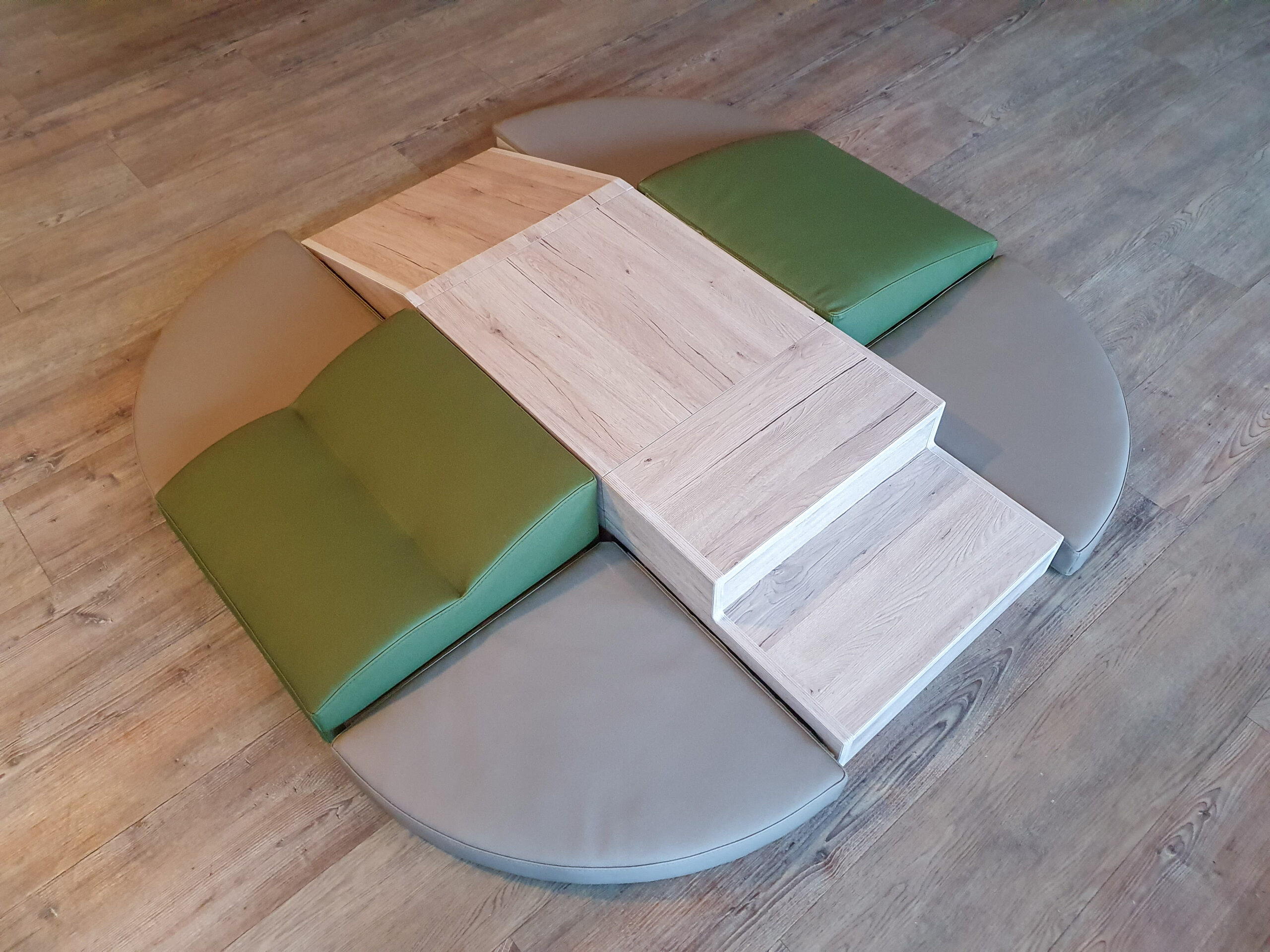 Het klautereiland is verkrijgbaar in twee varianten, geheel kunstleder en de combinatie van hout en kunstleder. Bekijk hier onze kleurstalen.