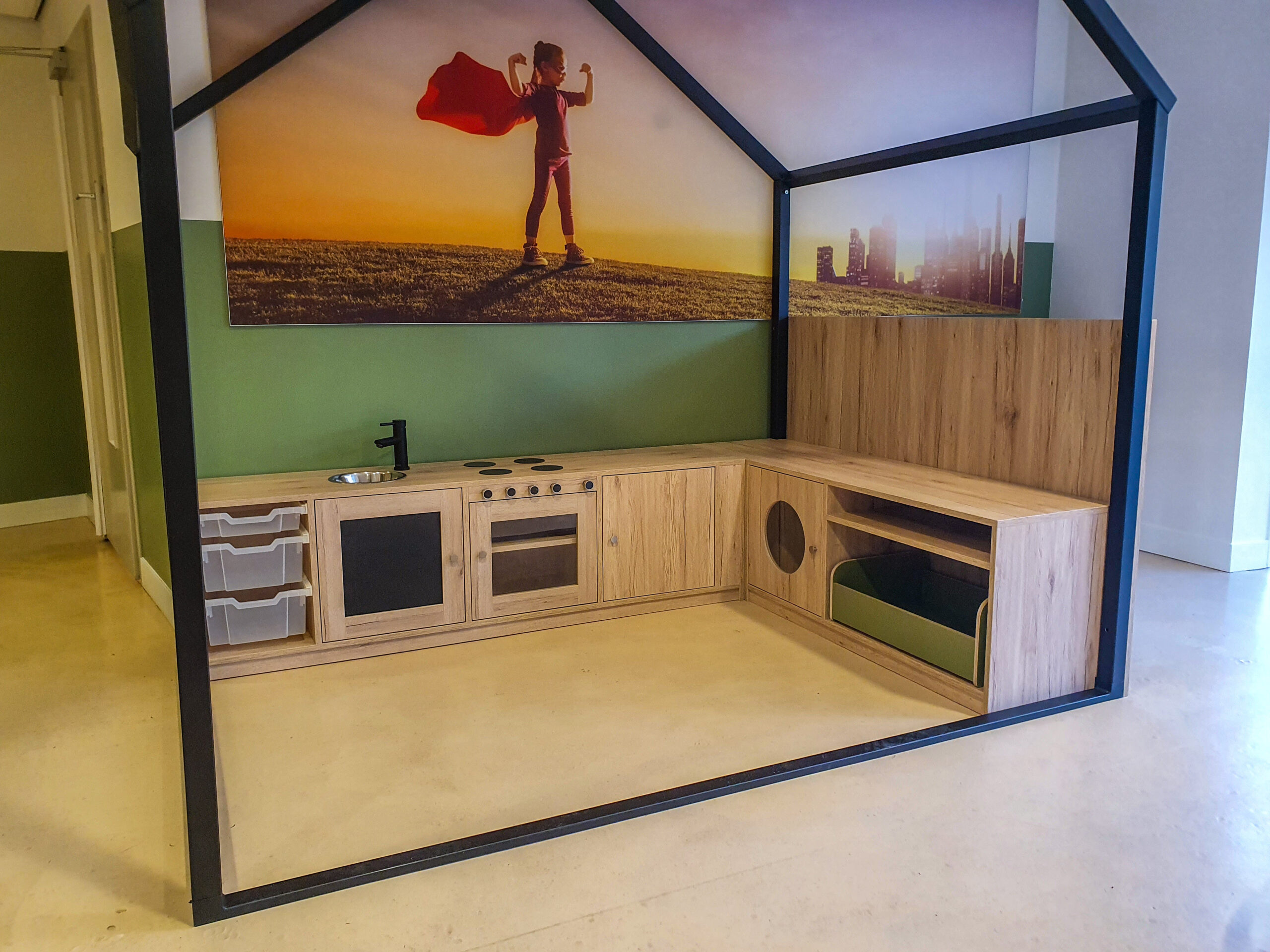 Andere maten of indelingen zijn mogelijk in overleg. Combineer speelmeubel Cooky met ons huisframe om een echt speelhuisje te maken.