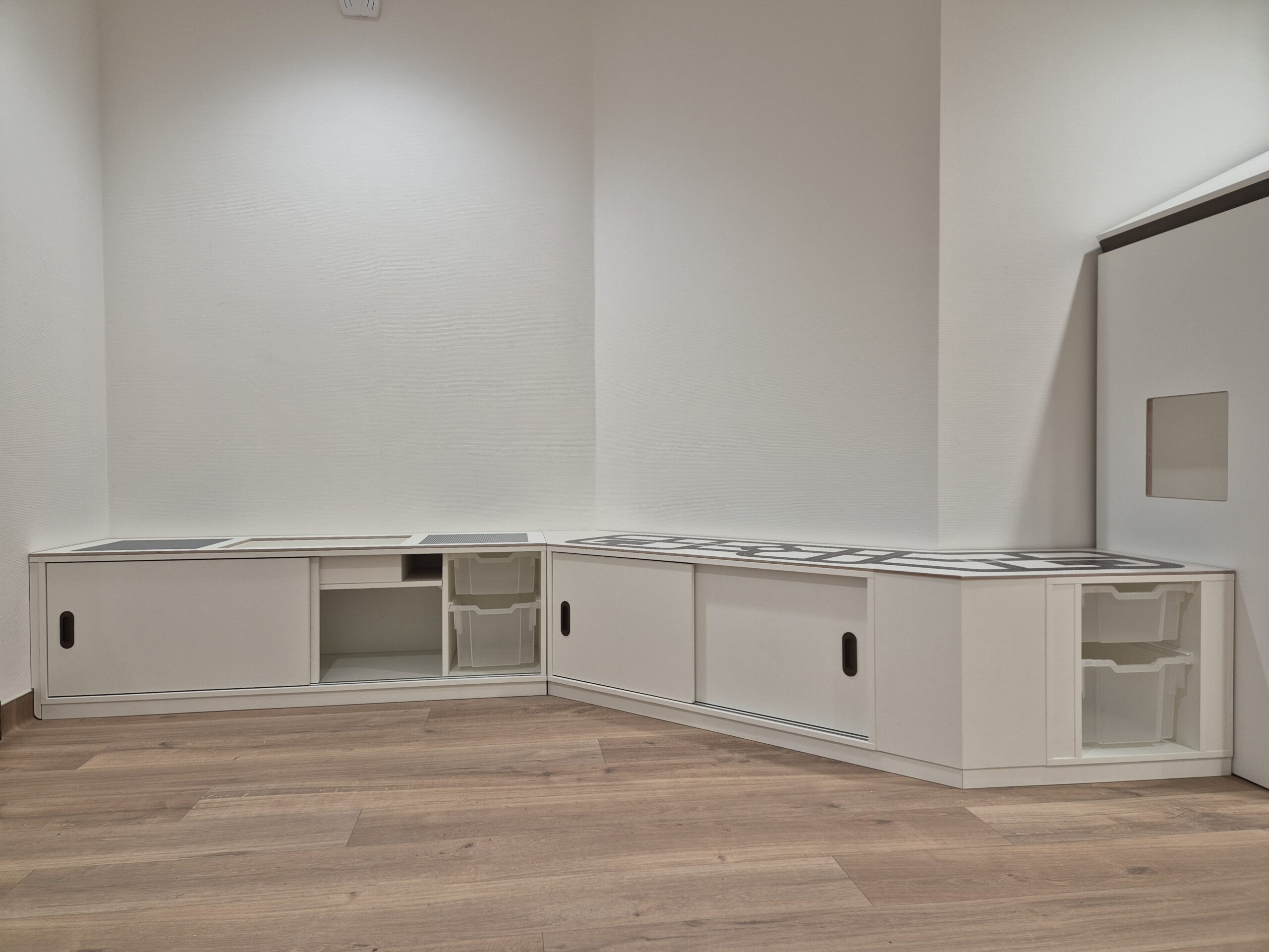 De Lego-/Duplokast zorgt voor urenlang speelplezier. Deze kast kan worden geproduceerd met lego- of duploplaten. Wanneer een ruimte duaal wordt gebruikt kunnen we omkeerbare platen toepassen waarbij er gewisseld kan worden tussen de lego- en duploplaten. De indeling van de kast is geheel naar wens. Hierbij kan je kiezen uit transparante bakken en legplanken. Ook is er de keuze om de kast (deels) te voorzien van schuifdeuren.