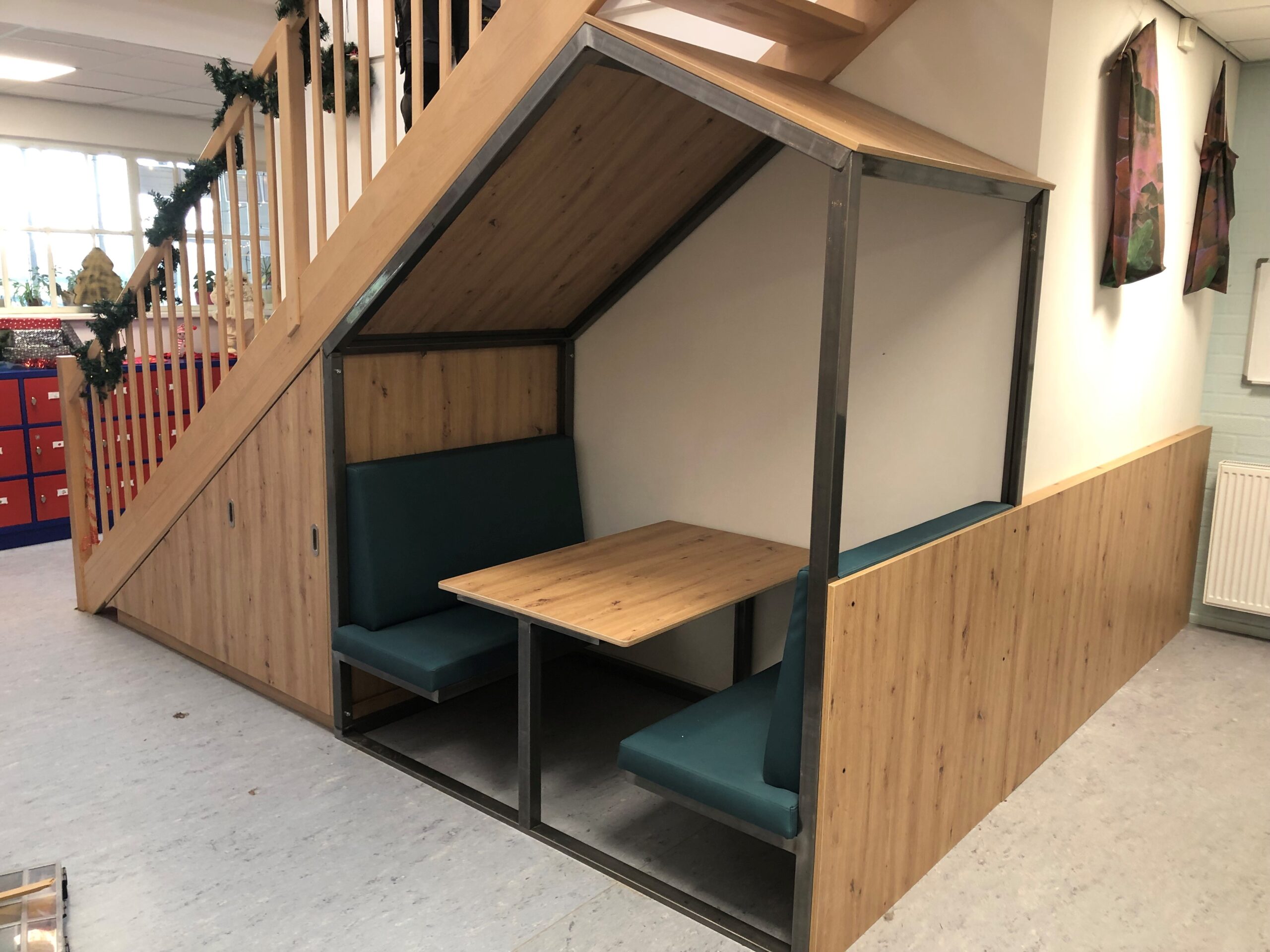 Met een metalen werkhuisje creëer je een knus hoekje om samen te zitten. Dit huisje is zeer geschikt om in pauze te houden, rustig te werken of een overleg in te houden. Met de werkhuisjes van 2KICK beslis je zelf hoe deze eruit komt te zien en voor hoeveel personen deze geschikt is. Daarnaast is er de keuze om het dak open te laten of af te sluiten met houten dakpanelen.