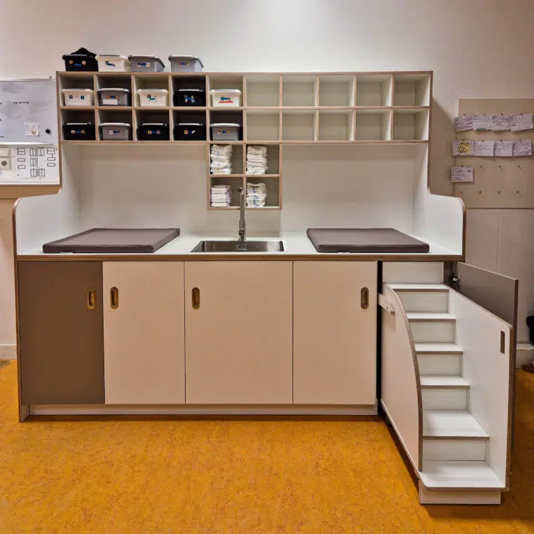 Voor deze kinderopvang hebben we twee maatwerk commodes gerealiseerd die zowel praktisch als kindvriendelijk zijn. De commodes zijn voorzien van